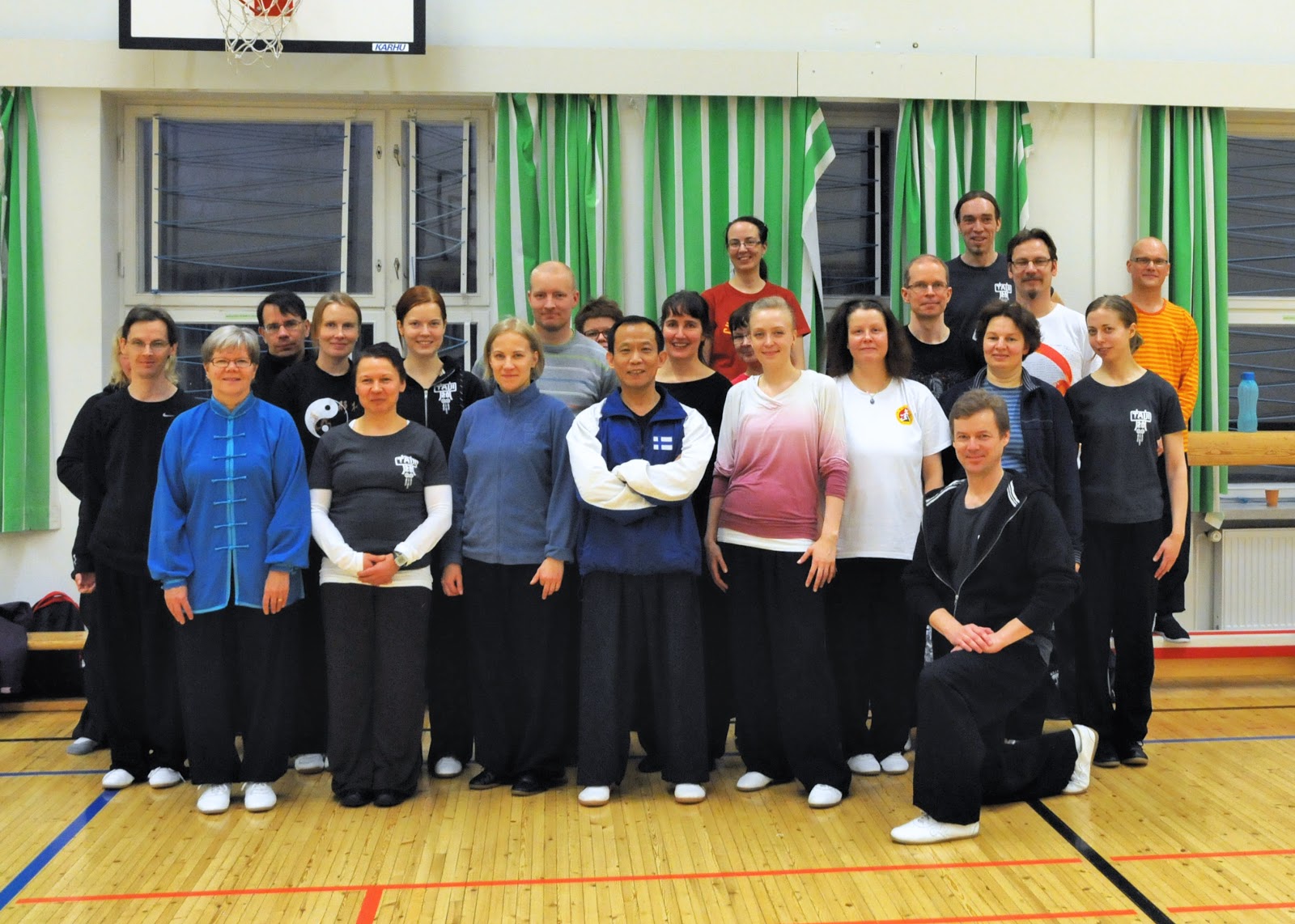 Itsenäisyyspäiväviikonloppuna, kuten viime vuonnakin samaan aikaan, nautimme Shifu Zhang Fangin leiristä sekä seuramme pikkujouluista. Iloksemme myös vanhat kaverimme Matti ja Jukka Jyväskylästä liittyivät porukkaamme viikonlopuksi. Perjantai-iltana oli kolmen tunnin ajan ohjelmassa 24 liikkeen yang-tyylin sarja, jonka opetukseen pystyivät osallistumaan kaikki. Hienosti oli moni vasta-alkajakin mukana! Lauantaina ja sunnuntaina taas puolestaan treenattiin Chen-tyylin uutta sarjaa. Sarjaa oli aiemmin testailtu vain ohjaajaleireillä ja seuramme harjoituksissa viime keväästä saakka, mutta tämä oli ensimmäinen kaikille avoin leiri aiheesta. Pääsimmekin pitkälle sarjassa ja alamme innolla treenailemaan sitä tarkennusten kera.